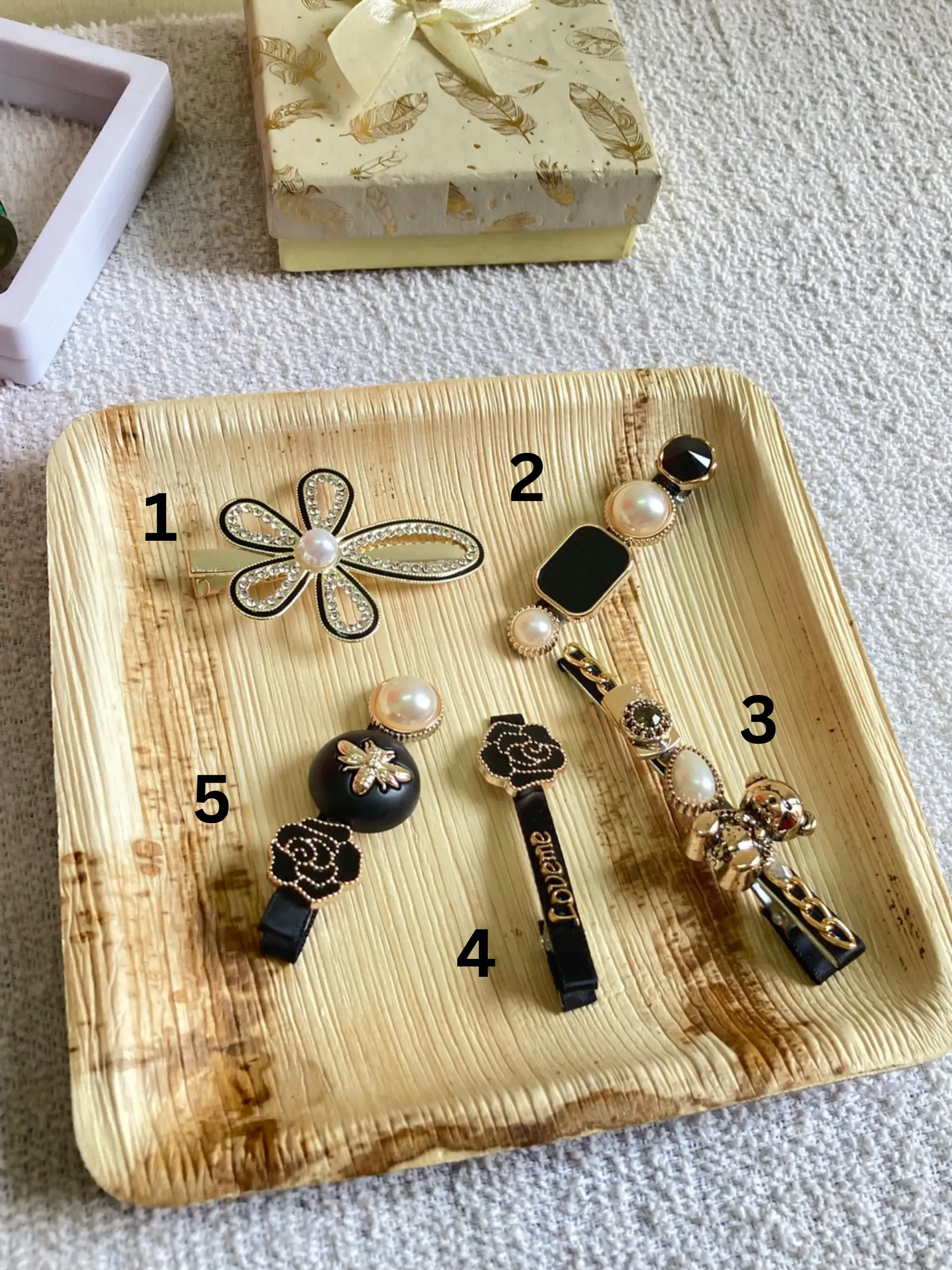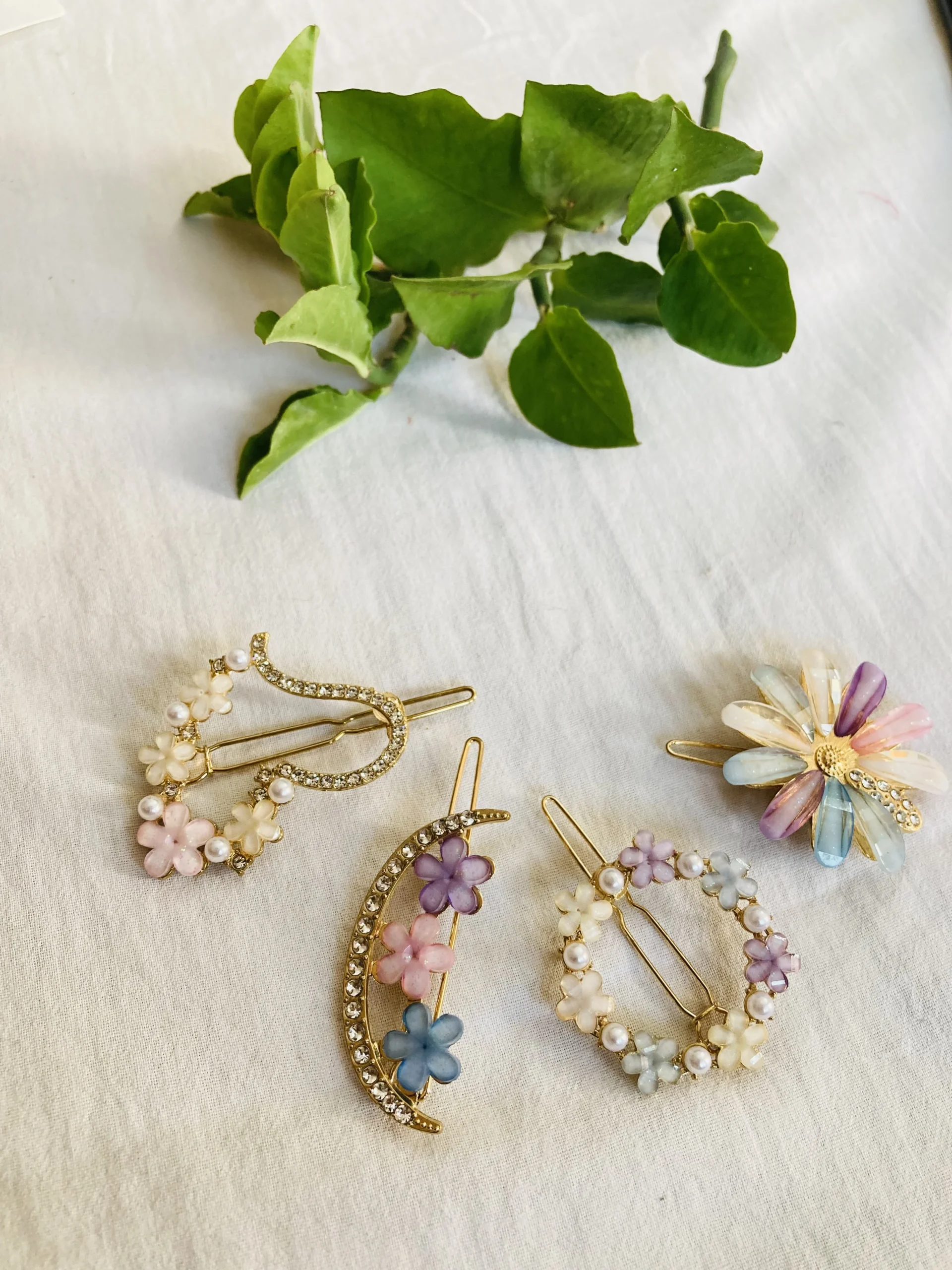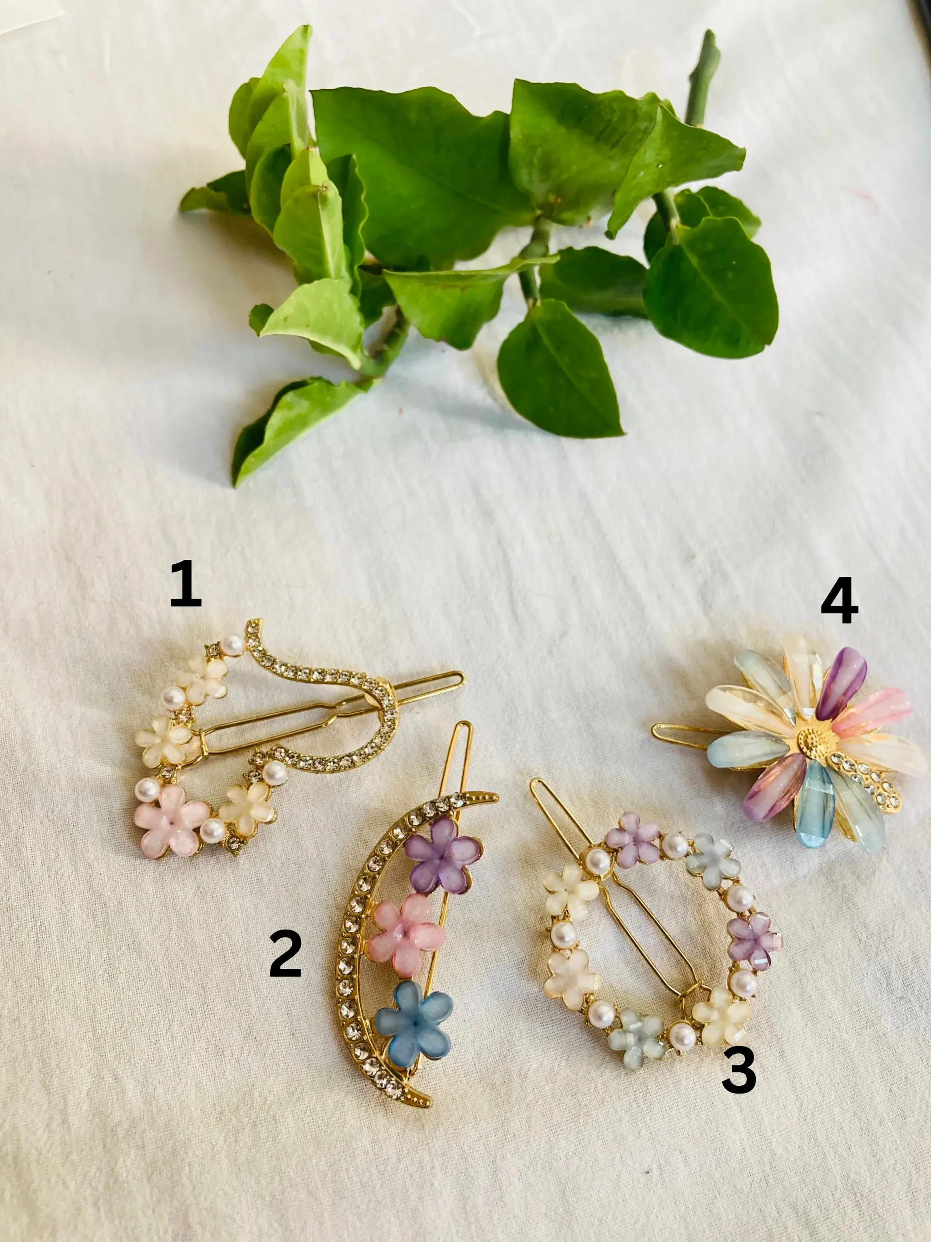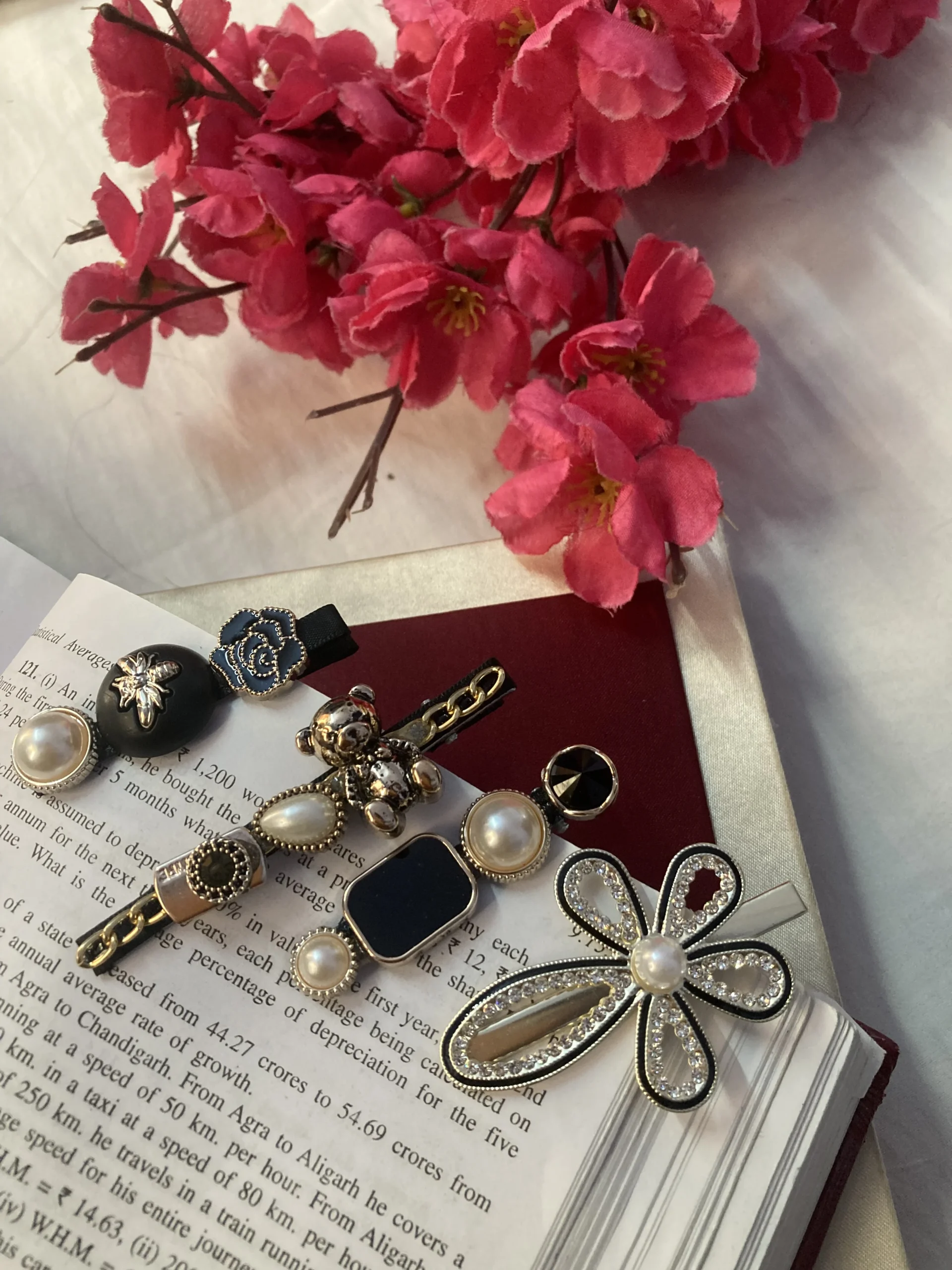 Floral, pearl, resin, and charm designs
